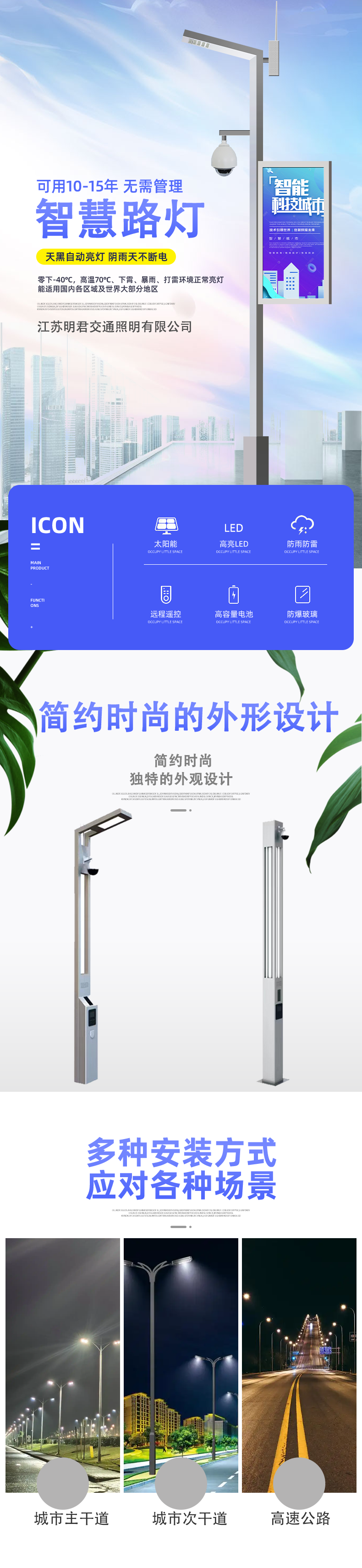 智慧路灯 综合共杆广告充电桩监控环境监测一体化路 灯厂家